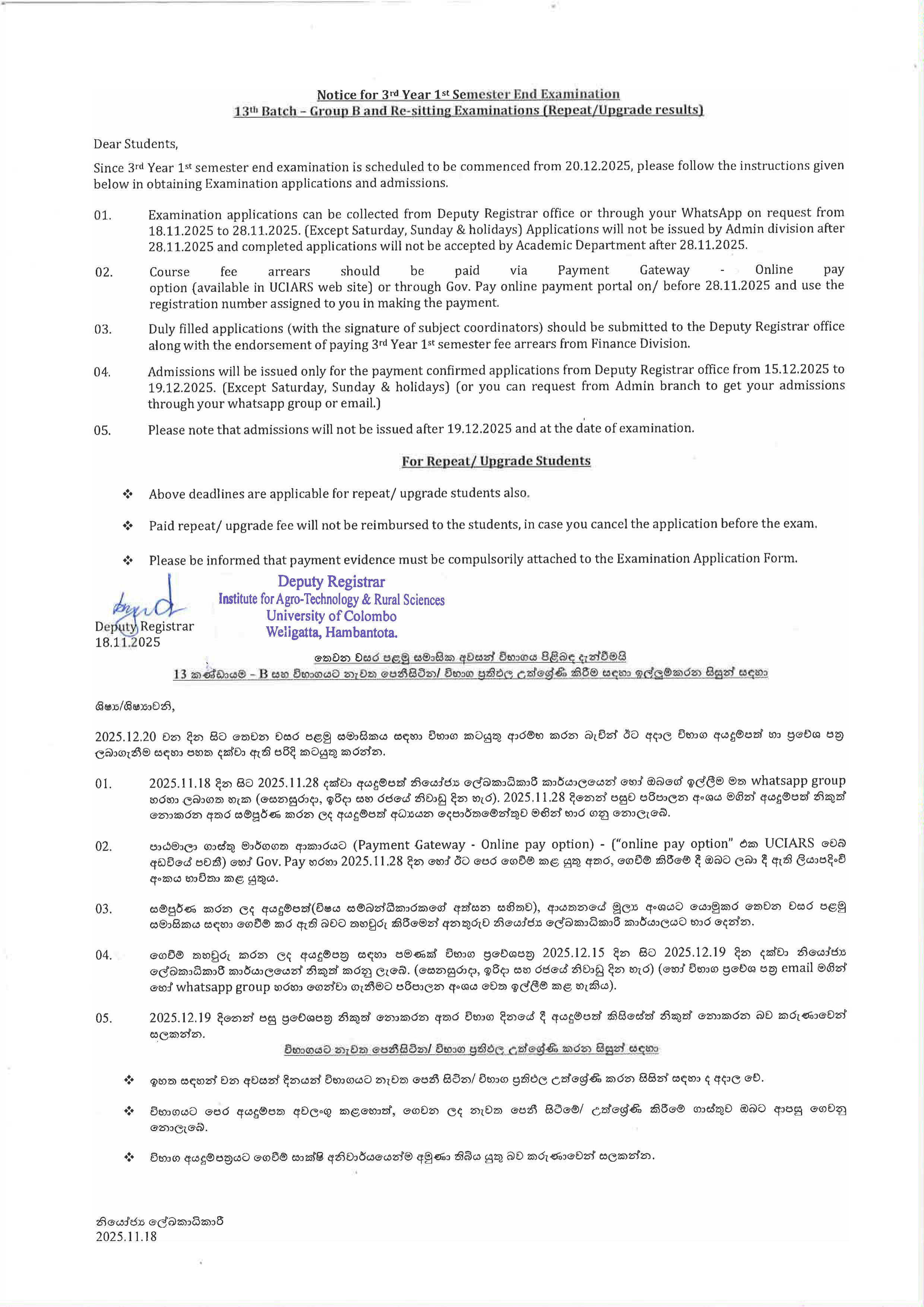 Examination Notice of Third Year First Semester - 13th Batch Group B by 🌱 LMS Admin - Wednesday, 19 November 2025, 11:56 PM Number of replies: 0 Exam Applications.zip Permalink