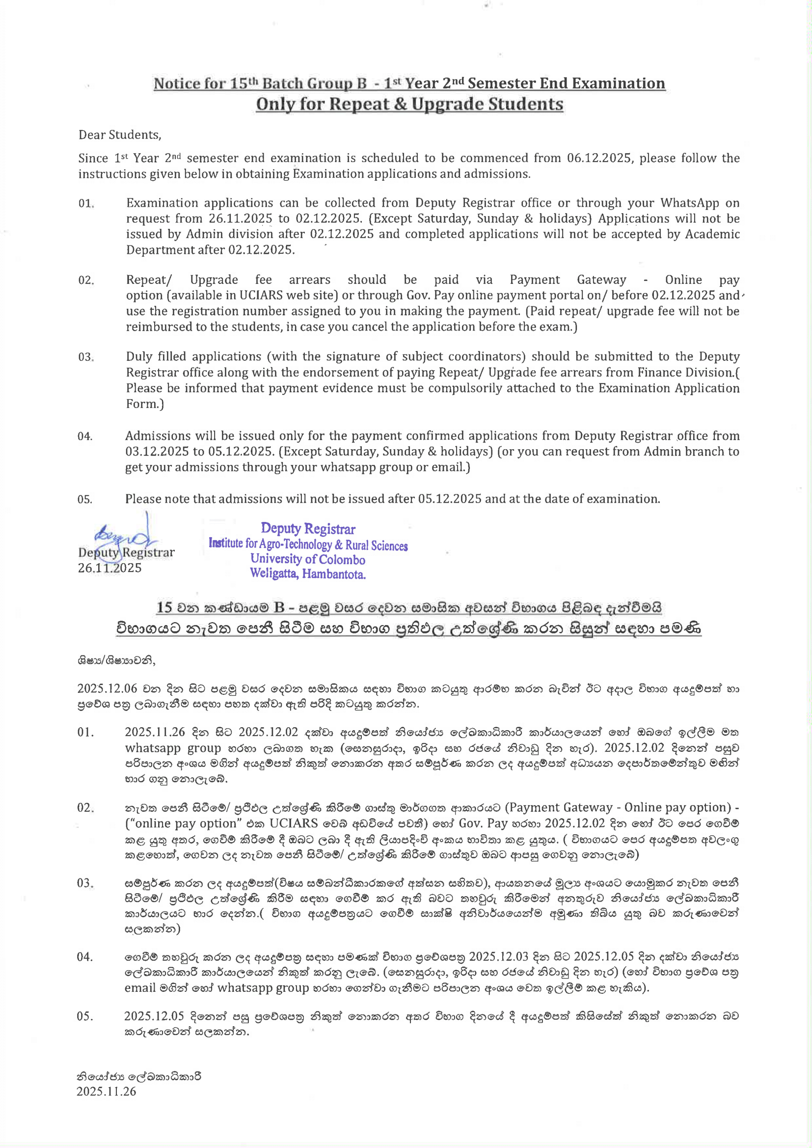 Examination Notice of First Year Second Semester - 15th Batch Group B [ Only for Repeat & Upgrade Students ] by 🌱 LMS Admin - Friday, 28 November 2025, 7:35 AM Number of replies: 0 Only for Repeat Upgrade Students.zip Permalink
